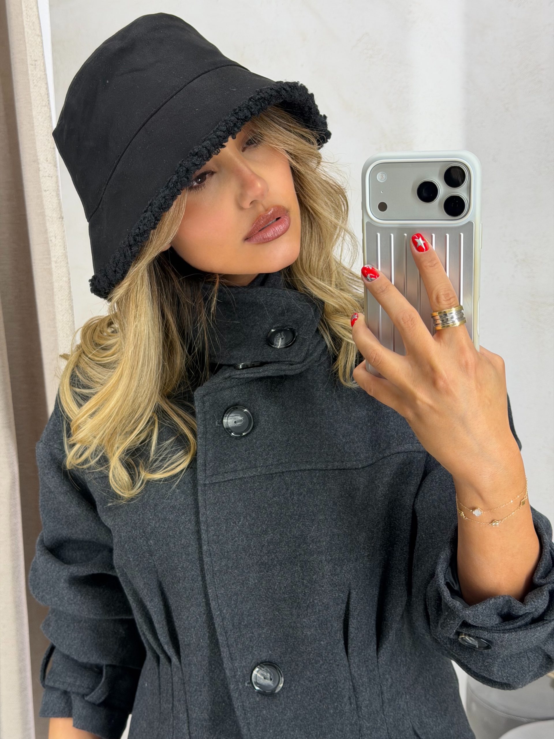 کلاه باکت جنس بوکله رنگ طوسی